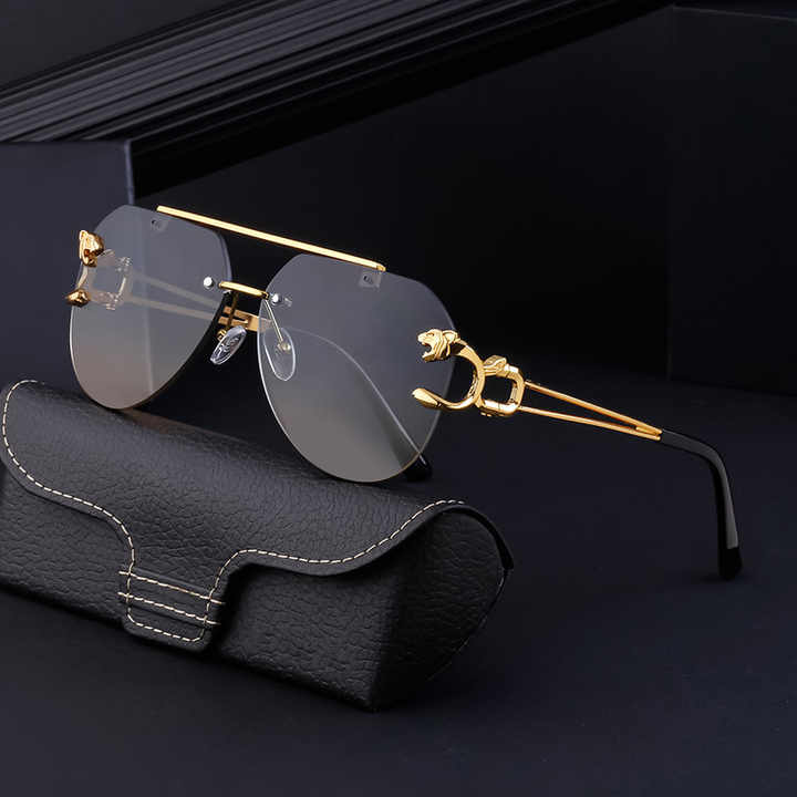 نظارات شمسية للحماية من أشعة الشمس UV400 ذات ظلال عالية الجودة ، نظارات شمسية معدنية رائعة مع جسر مزدوج بدون إطار للفهد والساق