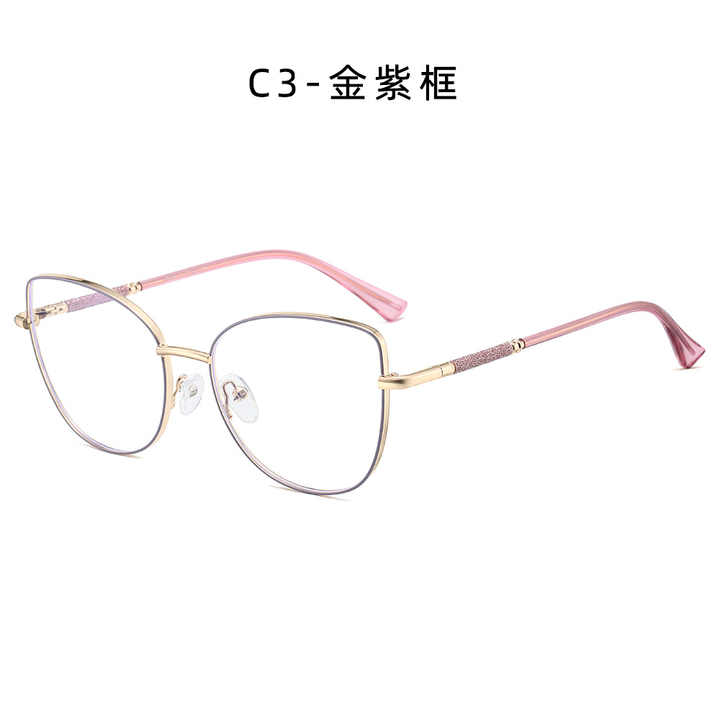 نظارات شمسية نسائية كلاسيكية موديل 2024، مصنوعة من الفولاذ المقاوم للصدأ على شكل عين القط، مزودة بمفصلات زنبركية، وإطارات نظارات مضادة للضوء الأزرق