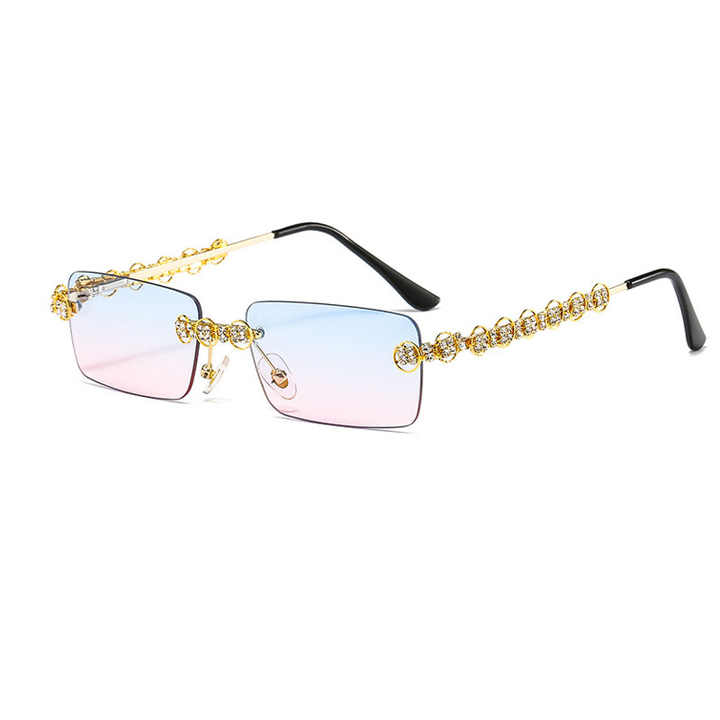 نظارات شمسية عصرية بدون إطار مرصعة بأحجار الراين والماس للنساء والرجال 2021