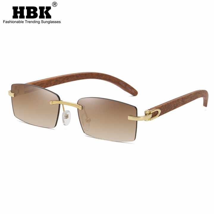 نظارة شمسية HBK مصنوعة من خشب الخيزران 2021، نظارات شمسية صغيرة مربعة بدون إطار