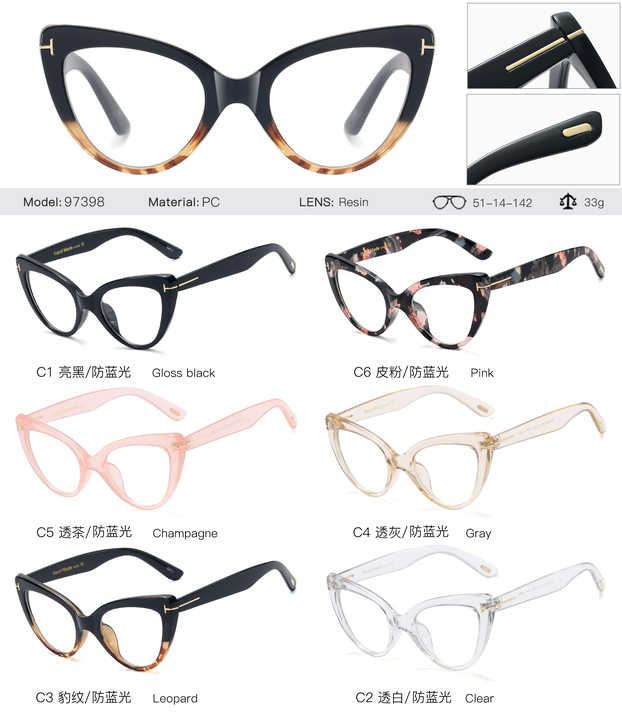 نظارات نسائية بصرية بإطار على شكل القطة, نظارات طبية للنساء ذات تصميم أنيق موديل 97398 Women's Cat Eye Optical Glasses, Fashion Design Women's Prescription Glasses Model 97398