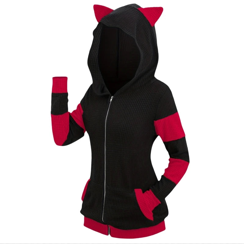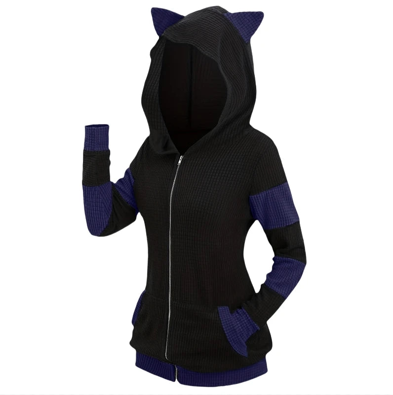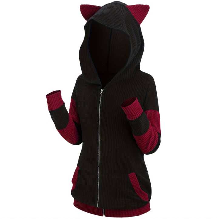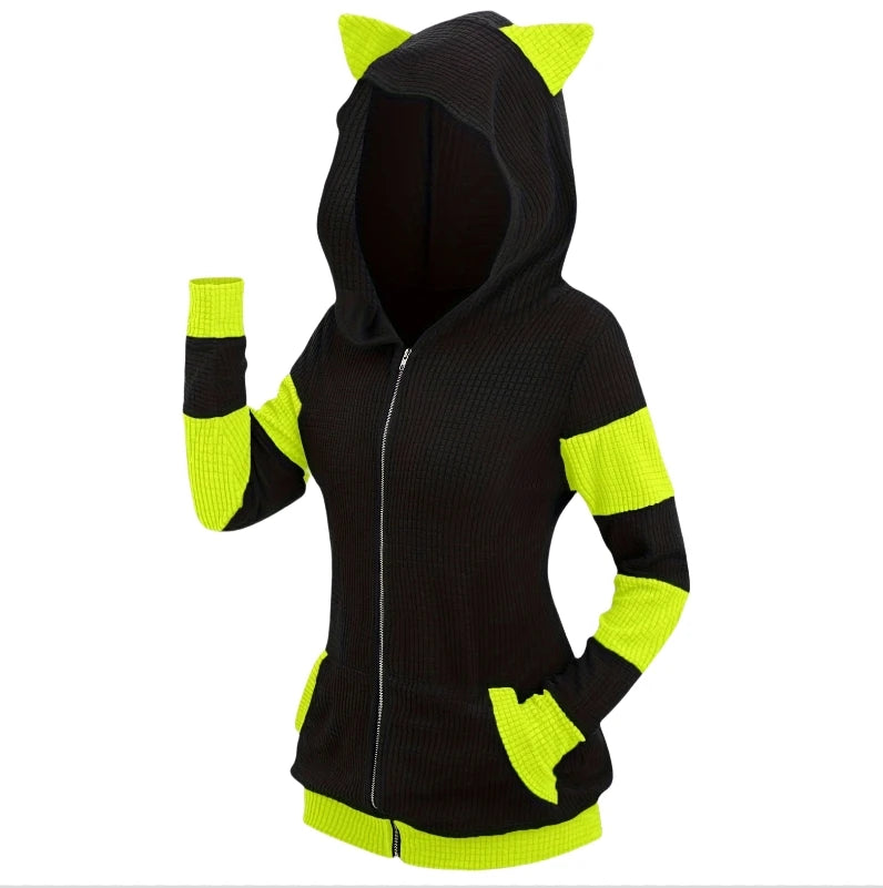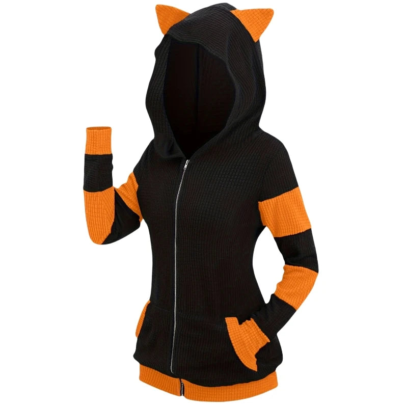 هوديس نسائي شتوي لطيف بألوان متعددة مع آذان قطة وسحاب وغطاء رأس سميك وجيوب قابلة للتخصيص