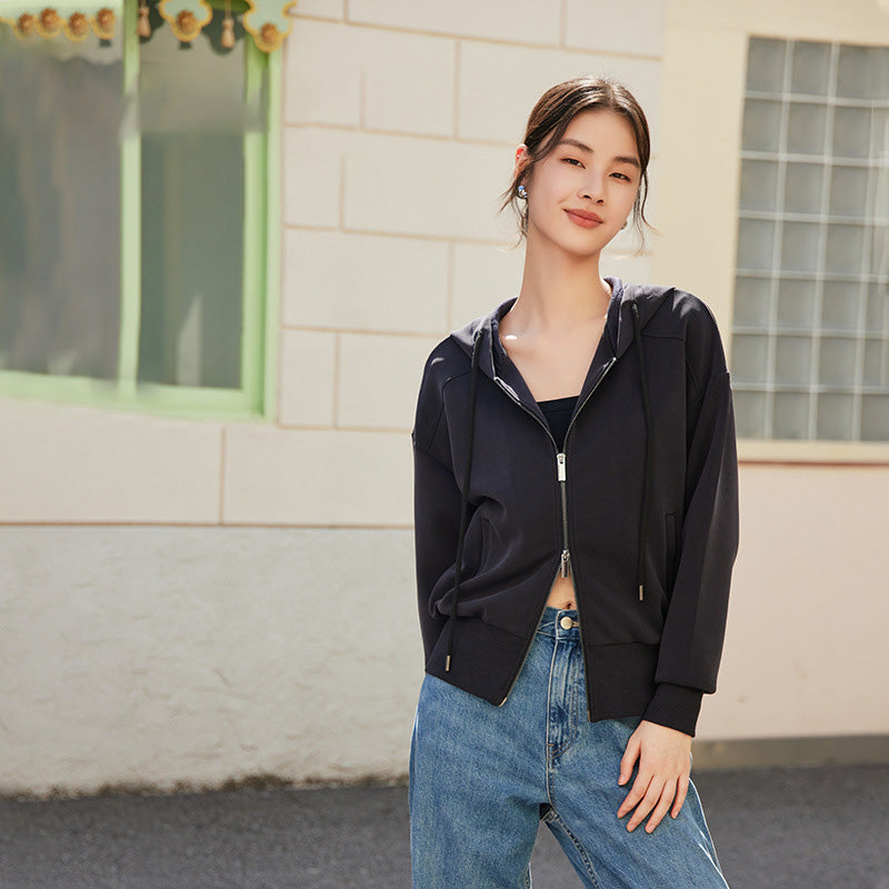 هوديز أنيقة بسحاب كامل وحبل ربط، مصنوعة من المودال الناعم الفاخر، تصميم عصري للشارع مع حواف مضلعة وسحاب مزدوج، إنتاج حسب الطلب