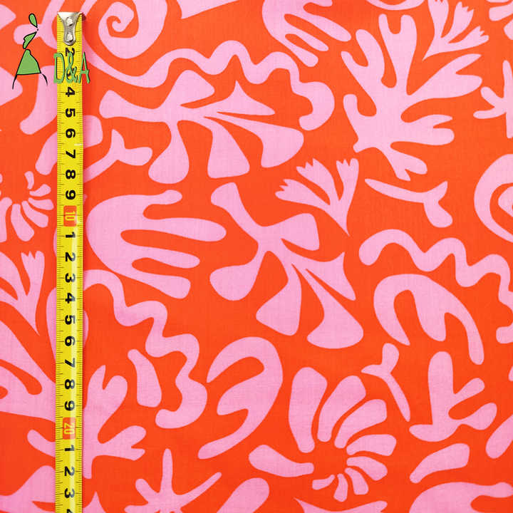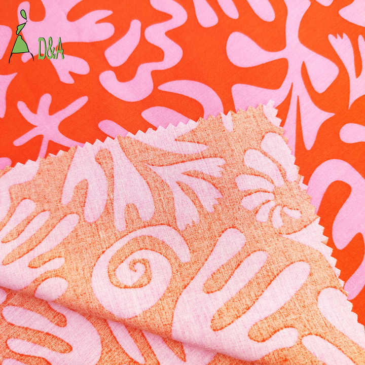 قماش رايون 100% للملابس، بخلفية برتقالية محمرّة ومطبوعات مرجانية بسعر رخيص