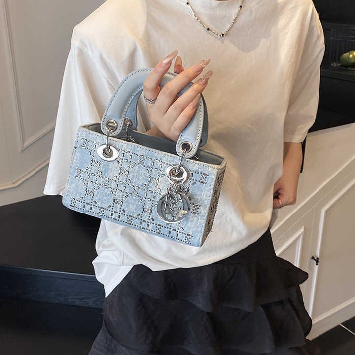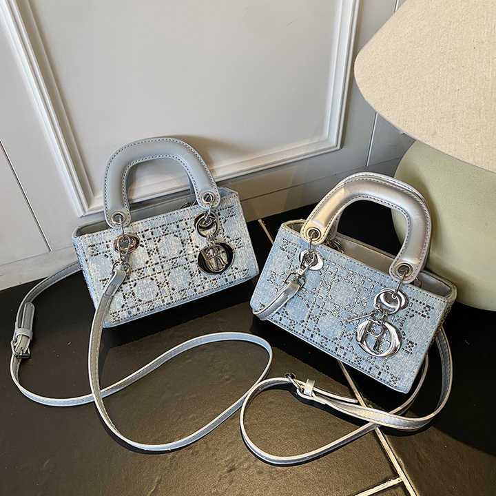 حقيبة يد فاخرة عالية الجودة للسيدات، حقيبة كتف نسائية أنيقة من قماش الدنيم، حقيبة كروس لامعة مخصصة