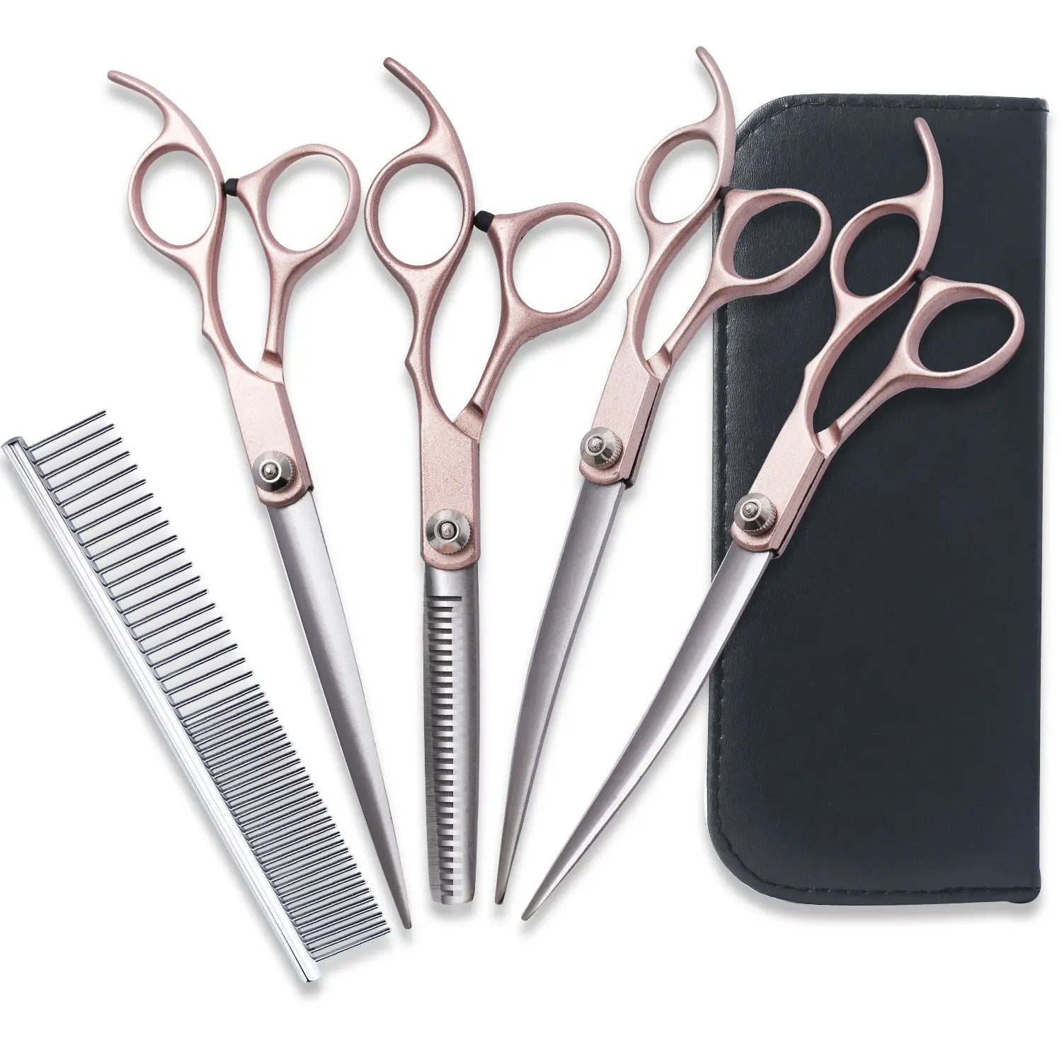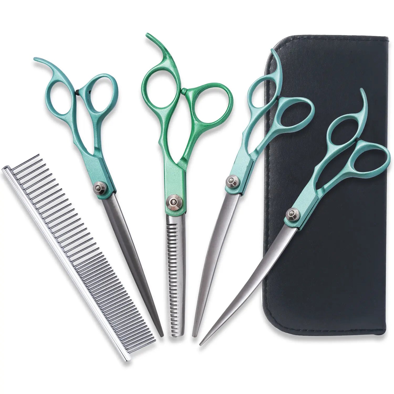 طقم مقصات العناية بالحيوانات الأليفة NEPURLson Color Teeth مقاس 7.0 بوصة، مكون من 4 قطع، مقص مستقيم لحماية الشفرة