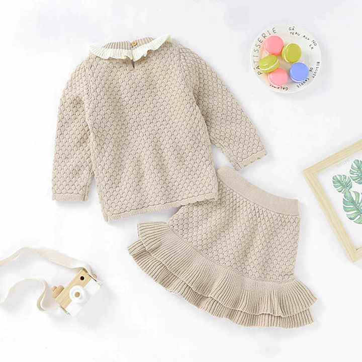Baby Newborn Baby Girls Boys Spring Winter Knitted Sweater Warm Thick Ruffle Long Sleeve Clothes Set Outfit