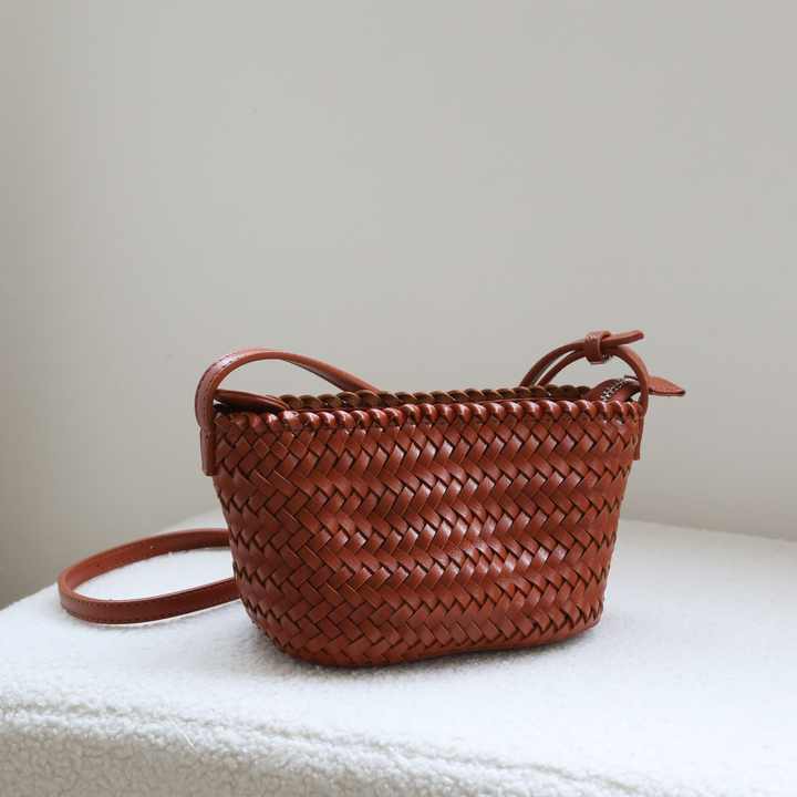 حقيبة كروس بودي نسائية جديدة عالية الجودة مصنوعة من جلد البولي يوريثان الناعم عالي الجودة منسوجة يدويًا بسحاب محمول أنيق