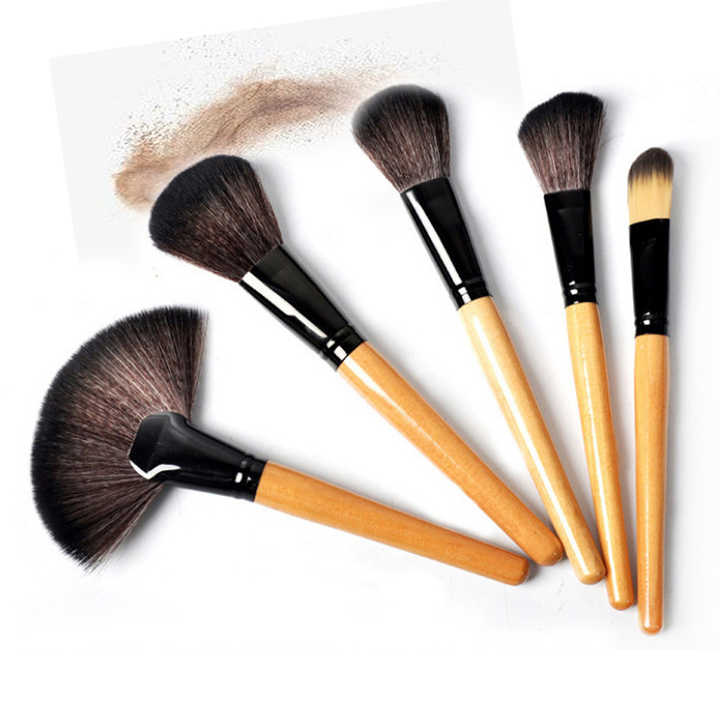 مجموعة فرش مكياج احترافية عالية الجودة، مكونة من 24 قطعة، بمقبض من الخيزران،