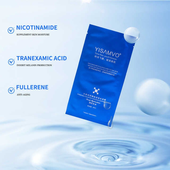 قناع ورقي مرطب من البيض الحريري بعلامة تجارية خاصة مع حمض الهيالورونيك والنياسيناميد ومفتح ومقاوم للشيخوخة للبشرة الجافة والباهتة