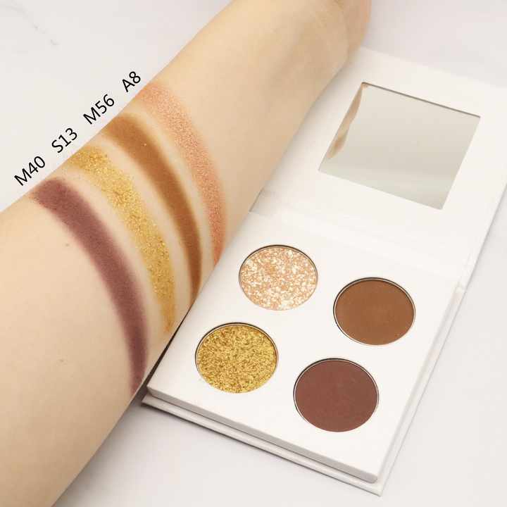 لوحة ظلال العيون المضغوطة المكونة من 4 ألوان مباشرة من المصنع مع لمسة نهائية غير لامعة لامعة، ظلال العيون اللامعة الخاصة بالعلامة التجارية للنساء متوفرة في المخزون!