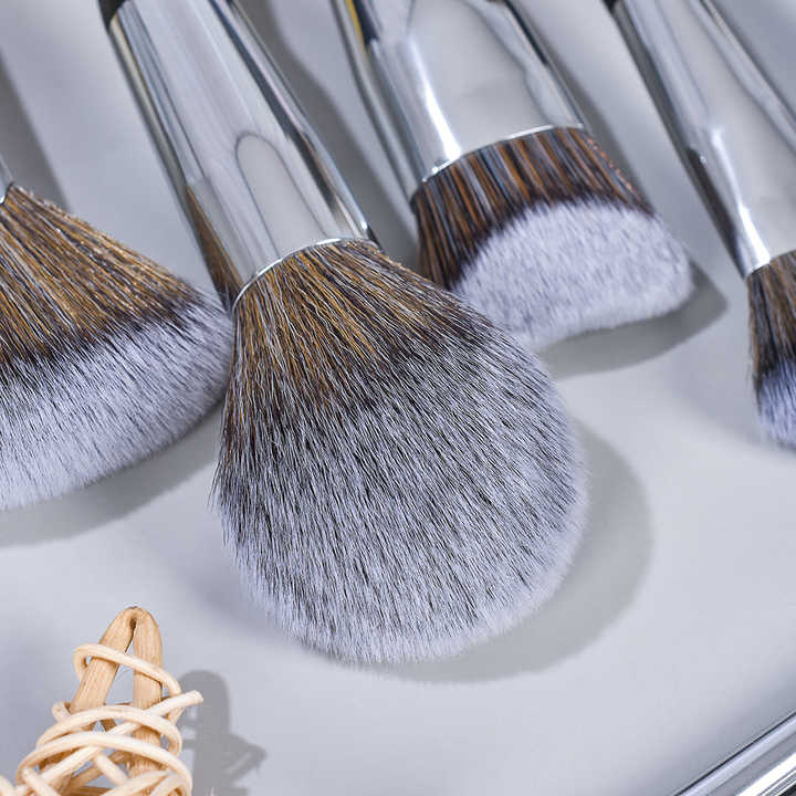 مجموعة فرش مكياج فاخرة سوداء مخصصة بمقبض خشبي وعلامة تجارية خاصة، فرش مكياج صناعية لمستحضرات التجميل
