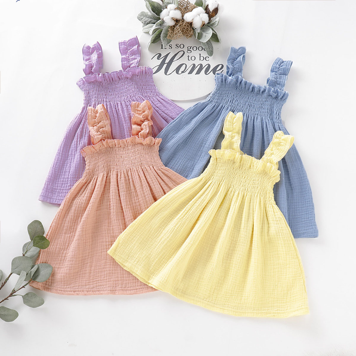 فستان بناتي للأطفال نمط ملابس أطفال تصميم جديد لون نقي فساتين بناتي عالية الجودة