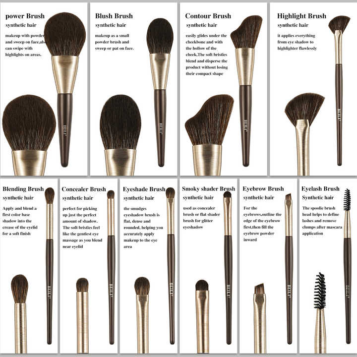مجموعة فرش مكياج احترافية فاخرة من الشعر الصناعي الفاخر، 10 قطع، مجموعة فرش مكياج بشعار مخصص مع حقيبة