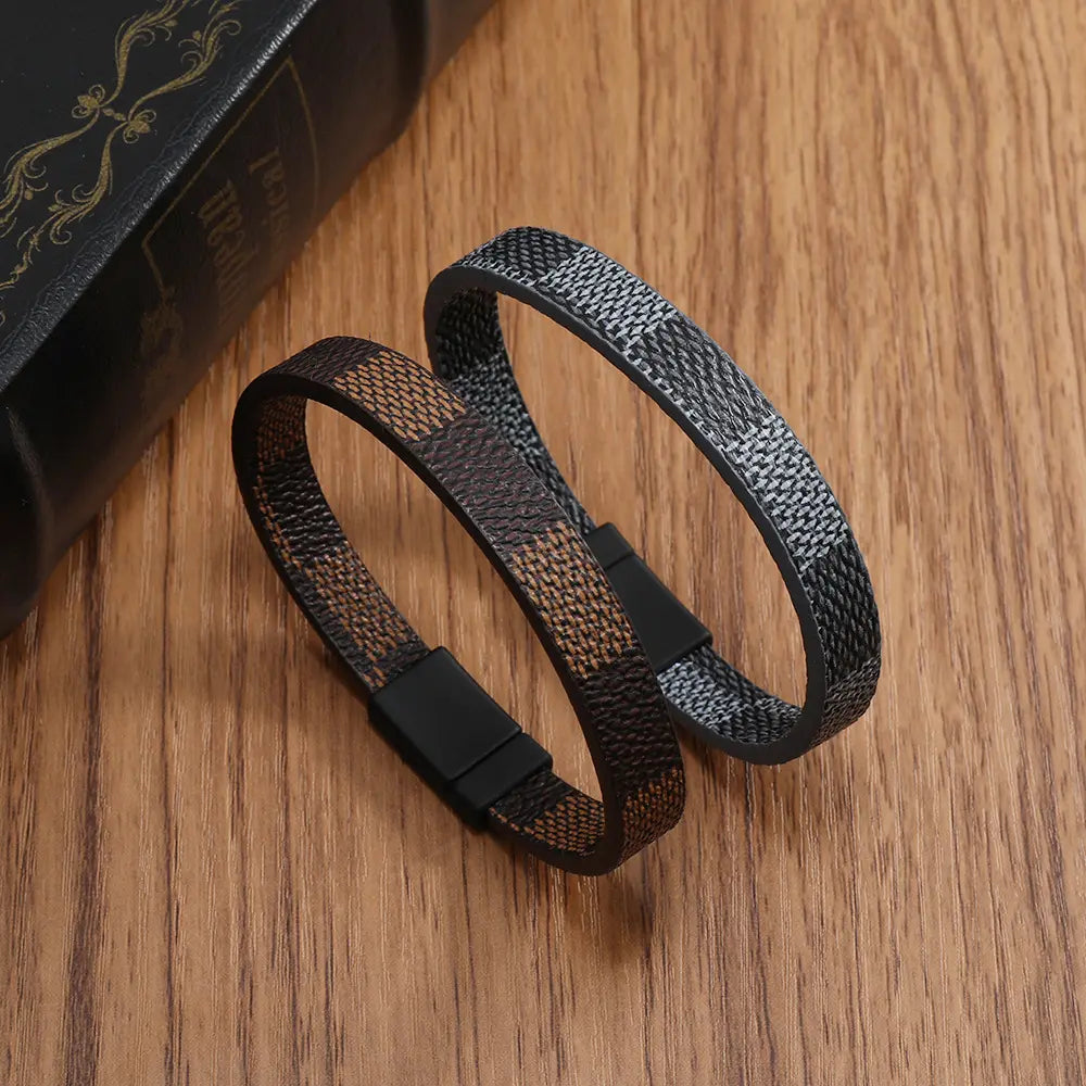 Cross-border New Products Retro Pattern Colour-blocking, Simple Punk Style Leather Magnet Buckle Bracelet European and American