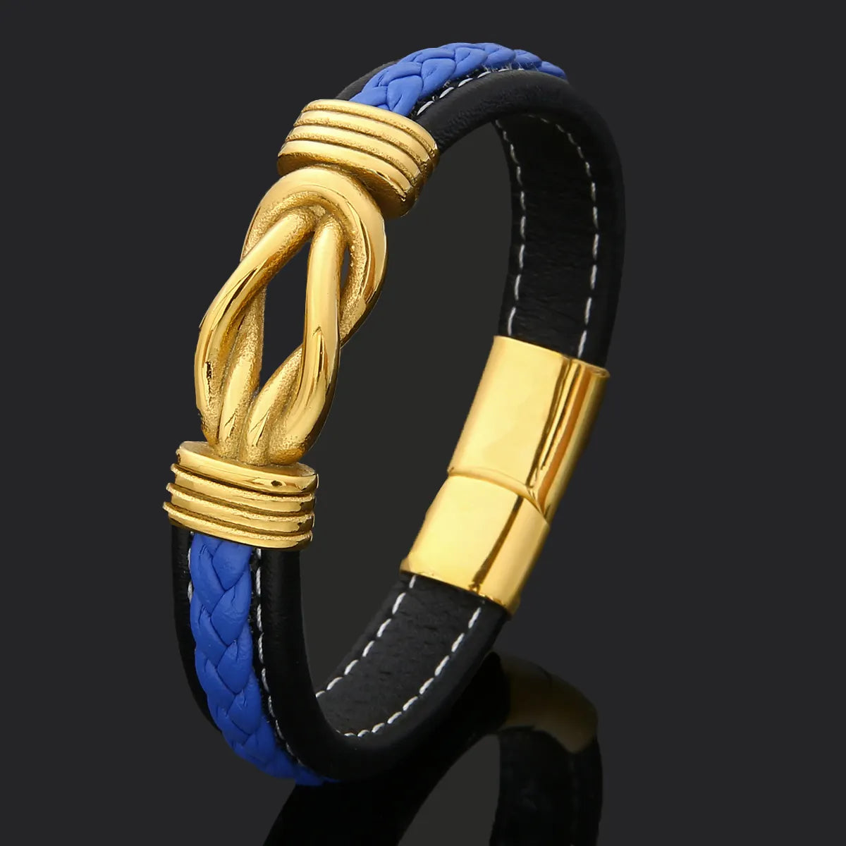 أساور جلدية جديدة للرجال من الفولاذ المقاوم للصدأ باللونين الأسود والبني الفاتح على الطراز الأوروبي والأمريكي لعام 2020