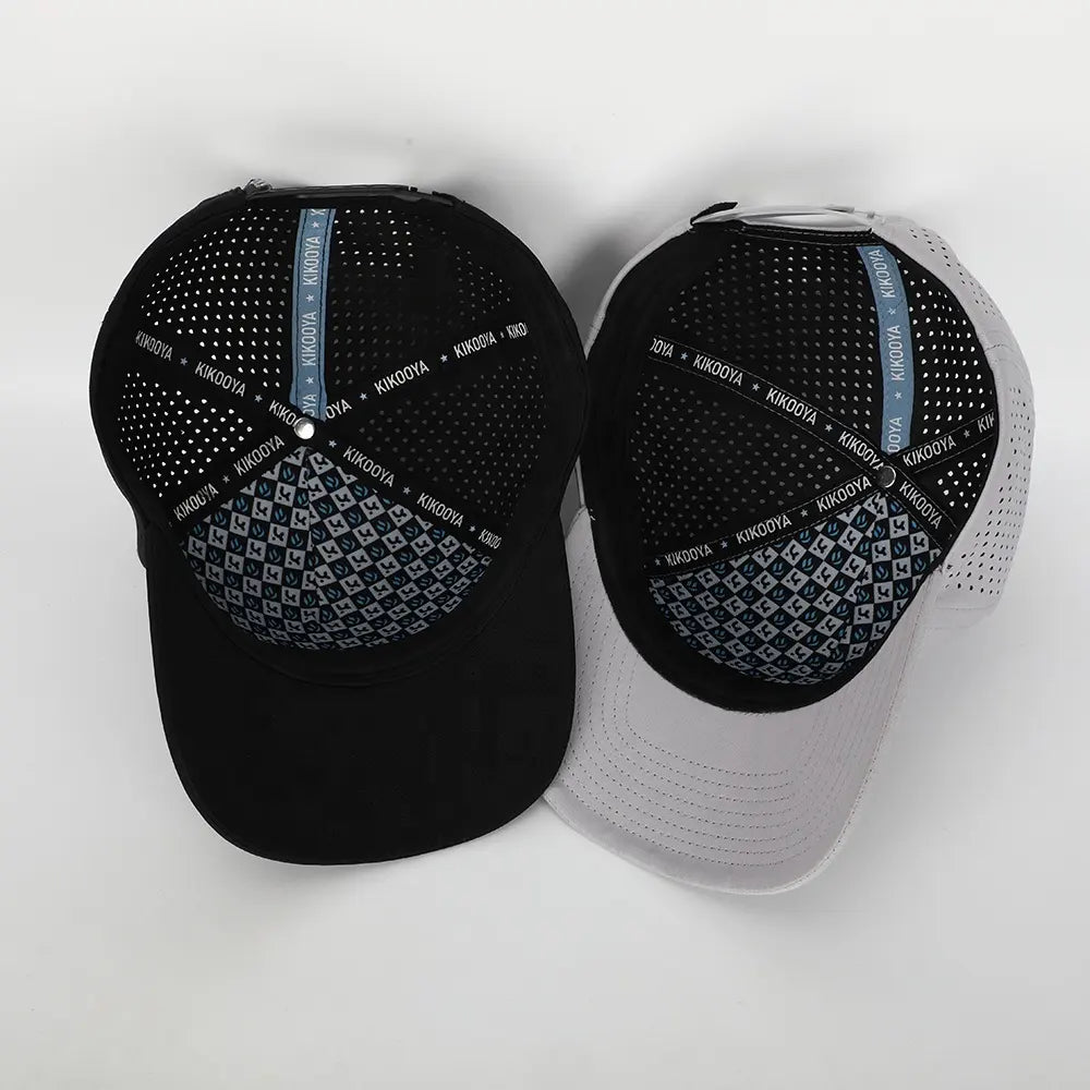 Wholesale Custom PVC Patch Logo 5 Panel Running Sport Laser Cut Hole Gorras Dad Hat Polyester Golf Performance Baseball Cap
