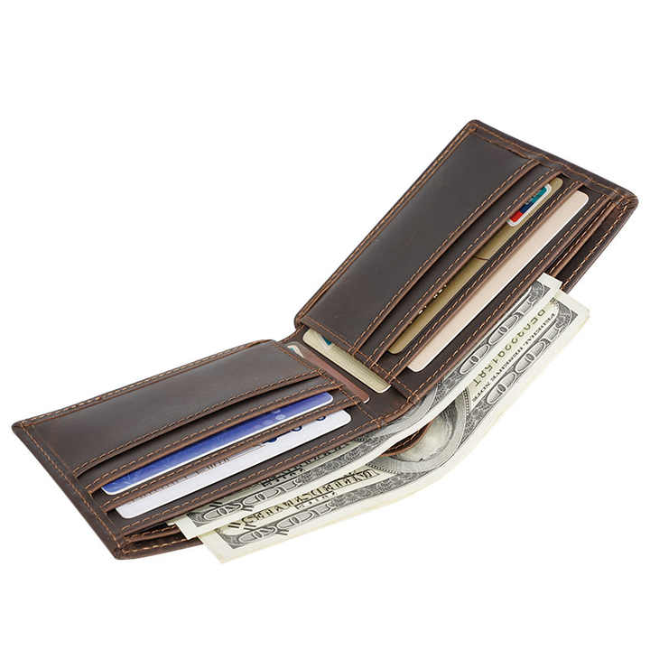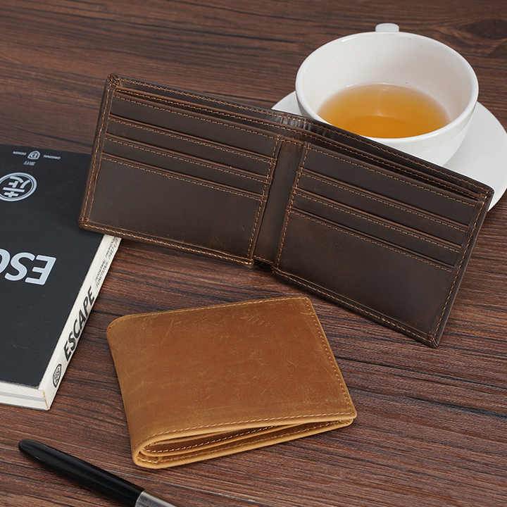 تخفيضات هائلة عالية الجودة مخصصة خمر جلد الحصان المجنون RFID حجب محفظة حامل بطاقات جلد طبيعي