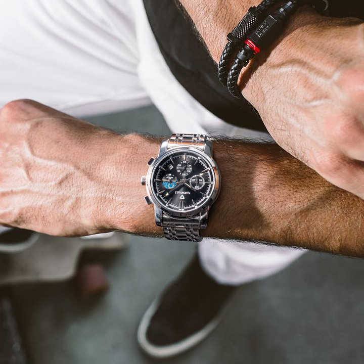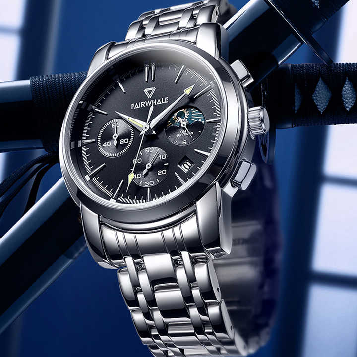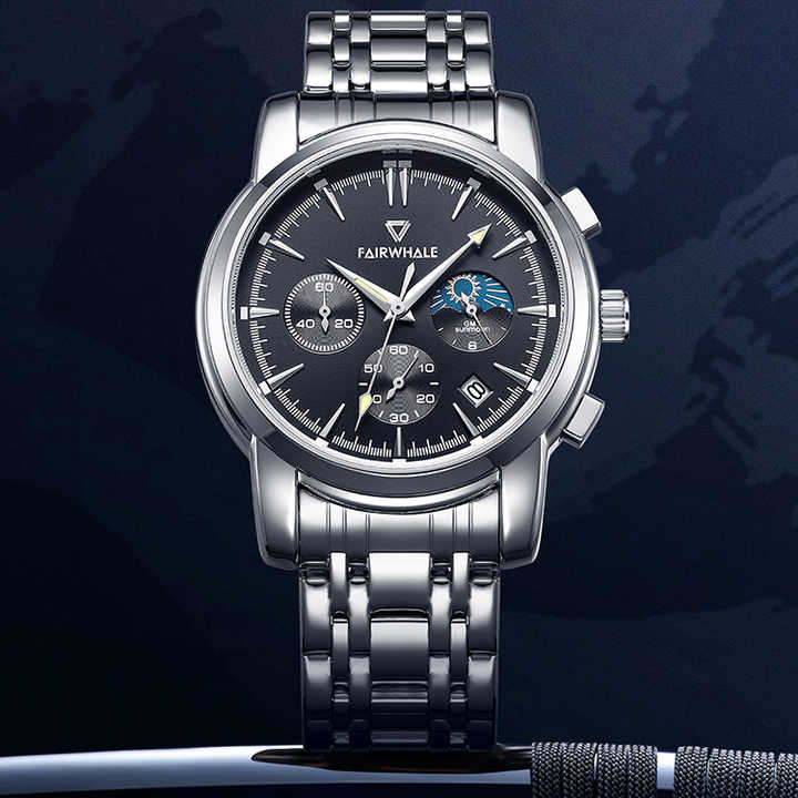 ساعات معصم رياضية فاخرة من الفولاذ المقاوم للصدأ بتقويم ثلاثي العيون مقاومة للماء مضيئة بتاريخ الأسبوع