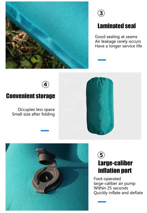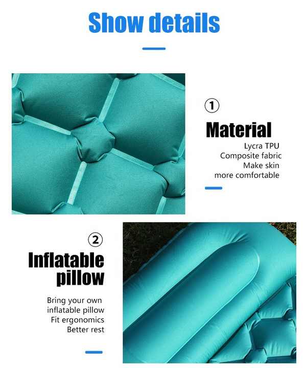 بساط تخييم خارجي قابل للنفخ ذاتيًا، مرتبة هوائية خفيفة الوزن، بساط نوم مقاوم للماء للتخييم مع وسادة
