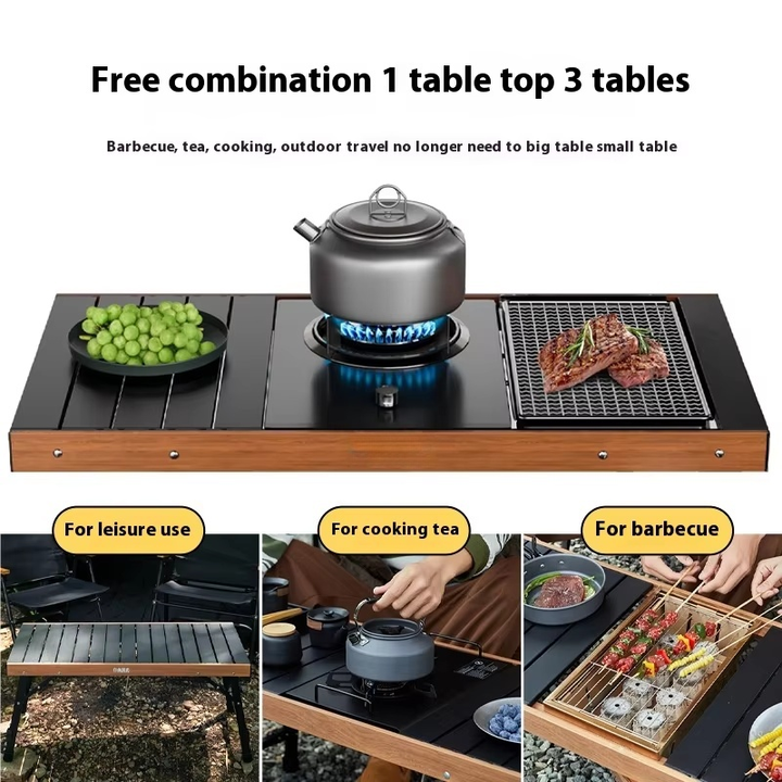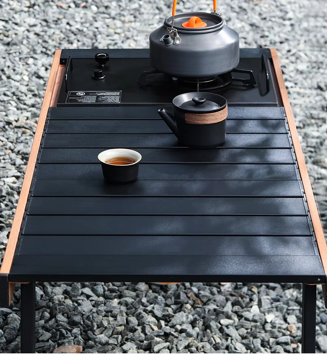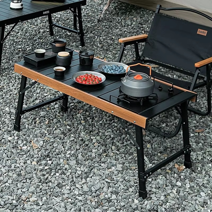طاولة خشبية قابلة للطي على الطريقة اليابانية من سبائك الألومنيوم للتخييم في الهواء الطلق لتناول الطعام