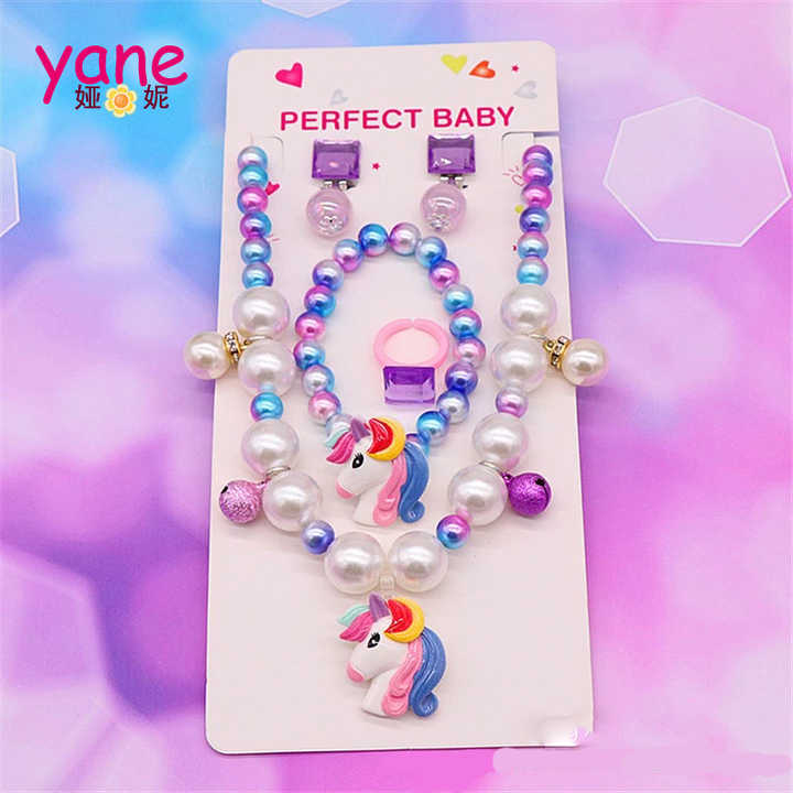مجموعة مجوهرات يونيكورن للفتيات الصغيرات قلادة لطيفة وسوار وأقراط وخاتم للاحتفالات السنوية هدية شائعة لحفلات الأطفال