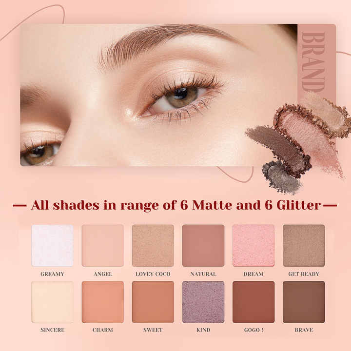 لوحة ظلال العيون لاس تشيكاس ١٢ لونًا لامعة غير لامعة بلمسة نهائية لامعة ومعدنية، بودرة مضغوطة لمكياج العيون