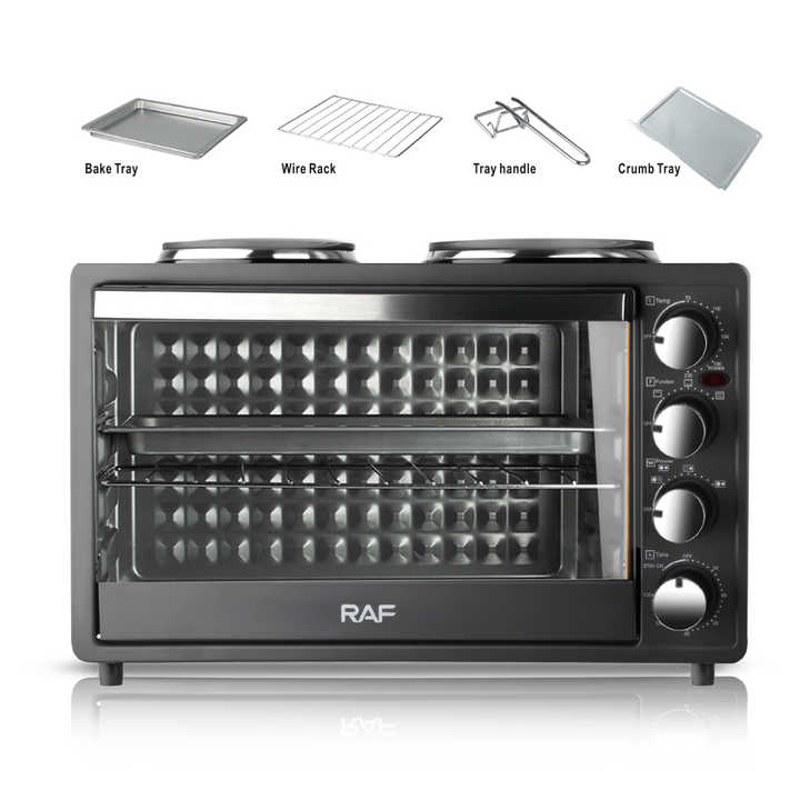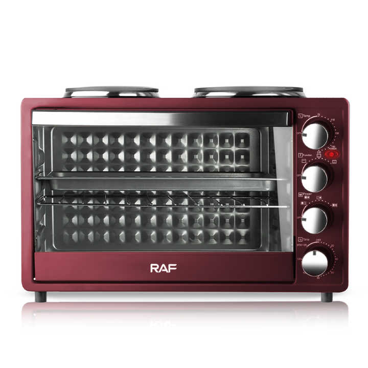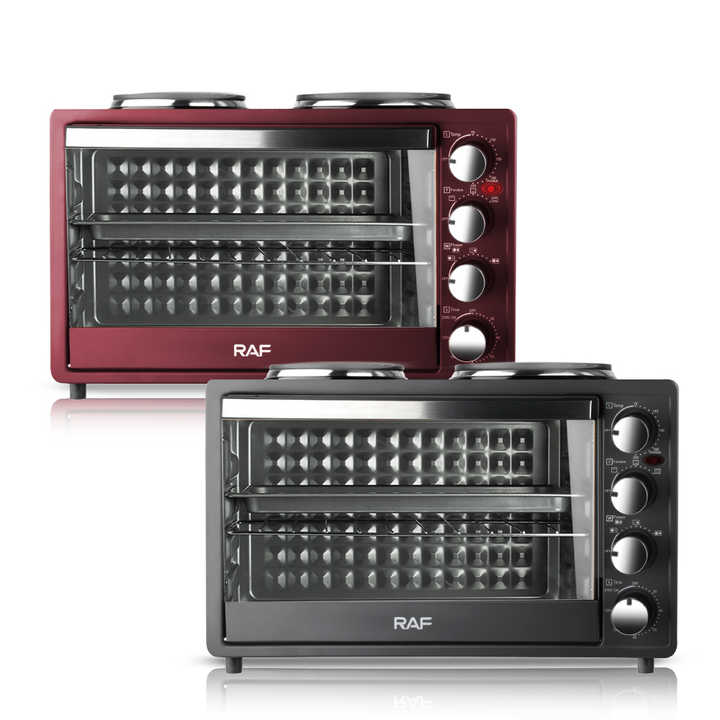 RAF ترقية جديدة 2 في 1 40 لتر قلاية هوائية كهربائية مع أبواب بصرية بألواح ساخنة (أحمر/أسود)