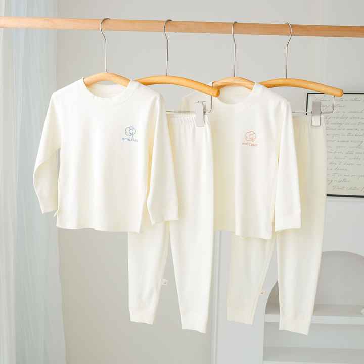RTS Wholesale Newest Kids Sleepwear Girls Boys Cotton Pajamas Set Solid Comfortable Custom 2 Piece Suit
