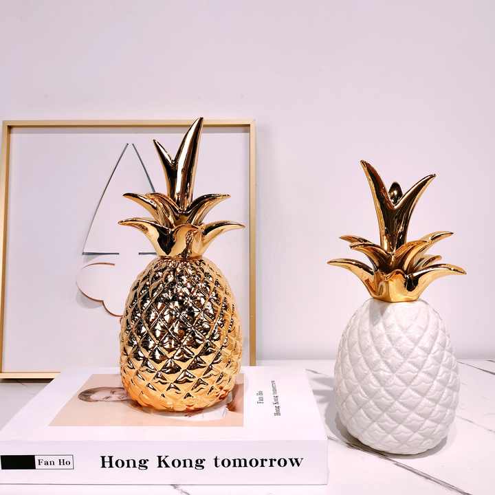 Modern Household Decoration Ceramic Electric Gold Plated Pineapple Home Luxury Decor Accessories ديكور منزلي عصري بسيط وخفيف فاخر على شكل أناناس مطلي بالذهب من السيراميك الكهربائي إكسسوارات ديكور منزلية فاخرة