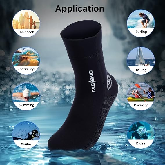 جوارب الغوص DIVESTAR المصنوعة من النيوبرين بسمك 3 مم و5 مم - جوارب مياه للشاطئ مضادة للانزلاق للغطس والسباحة والشباب والرجال والنساء