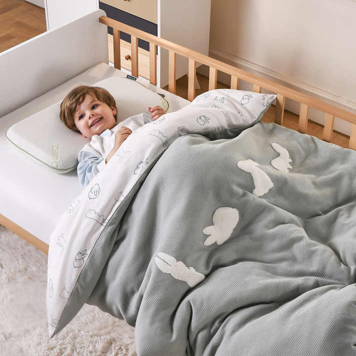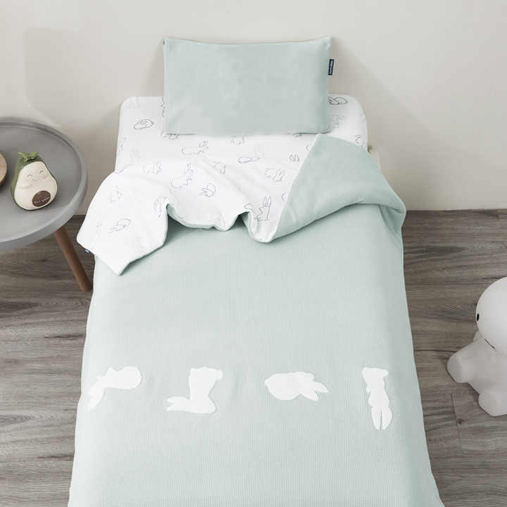 طقم لحاف من القطن المحبوك بنسبة 100%، لحاف مطرز ومبطن، وسادة، مرتبة ناعمة، مقاس قابل للتخصيص، مقاسات أطفال متضمنة