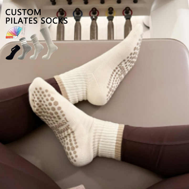 جوارب رياضية نسائية عالية الجودة مضادة للانزلاق من القطن المضغوط بتصميم غامض ومخصصة لممارسة اليوجا والبيلاتس