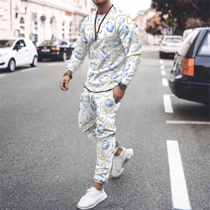 الرجال أزياء تي شيرت اللعب بطاقات الجرافيك طباعة طويل كم زائد حجم رياضية 2 قطعة مجموعة