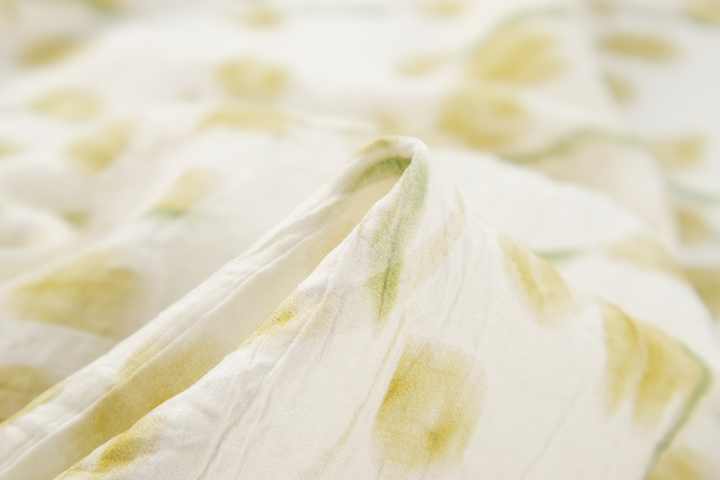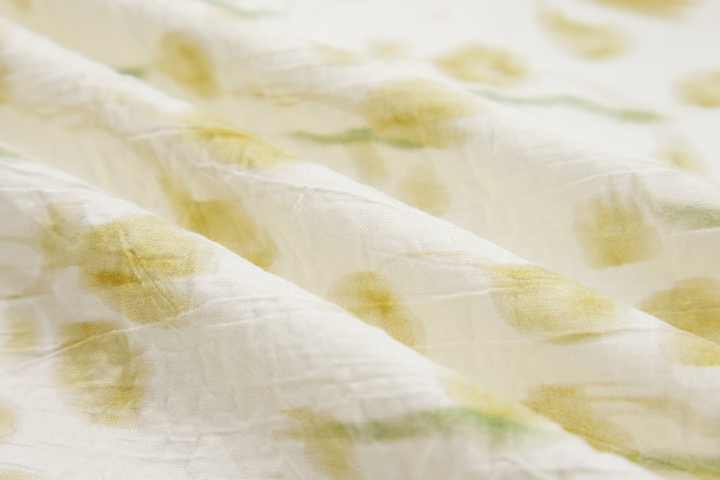 قماش تينسيل نايلون ناعم وشفاف مصبوغ باللون الأصفر بطبعة زهور وملمس مجعد وقماش قميص وفستان DIY