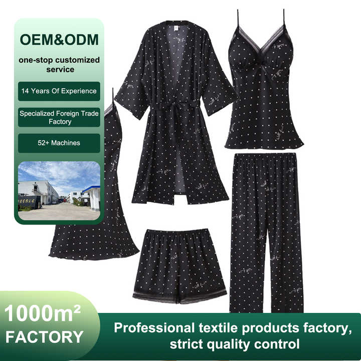 طقم نوم نسائي جديد مكون من خمس قطع من الحرير الصناعي، ملابس منزلية أنيقة مع قميص نوم ناعم لملابس النوم