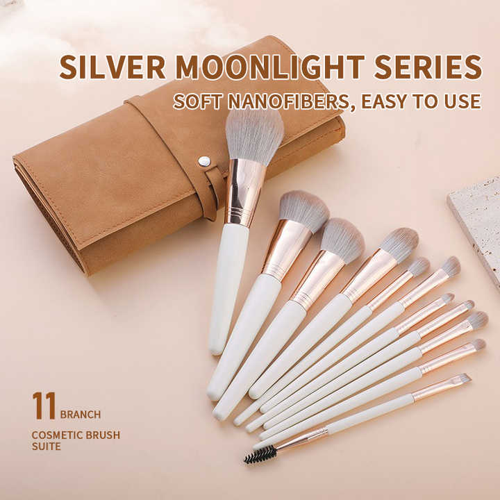 مجموعة فرش مكياج فاخرة باللون الأبيض