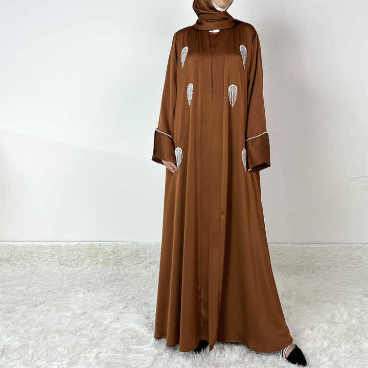 فستان زيفنغ أومي الجديد بتصميم شريط ألماس لامع من الخارج مع فستان طويل ومجموعة أزياء وطنية عباية