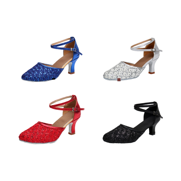 High Quality Latin Dance Heel for Women and Girls, Red Woven Pattern, Comfortable and Durable Brown Leather with 7cm Thick PU Satin Insole