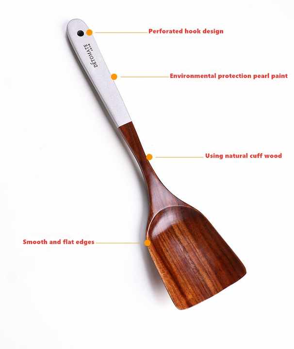 Multicolor Lacquered Teak Wood Kitchen Cooking Utensils, Wooden Spoon and Vegetable Turner Set, Kitchen Tool