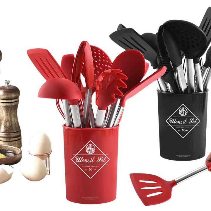 13 Piece Silicone Mini Cookware Set with Metal Kitchen Utensils Essential Kitchen Tools for Cooking and Food Prep