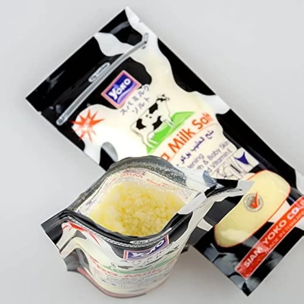 هذه أملاح استحمام سبا بالحليب من A Bonne و Yoko (متوفرة بنكهات مختلفة مثل البابايا).