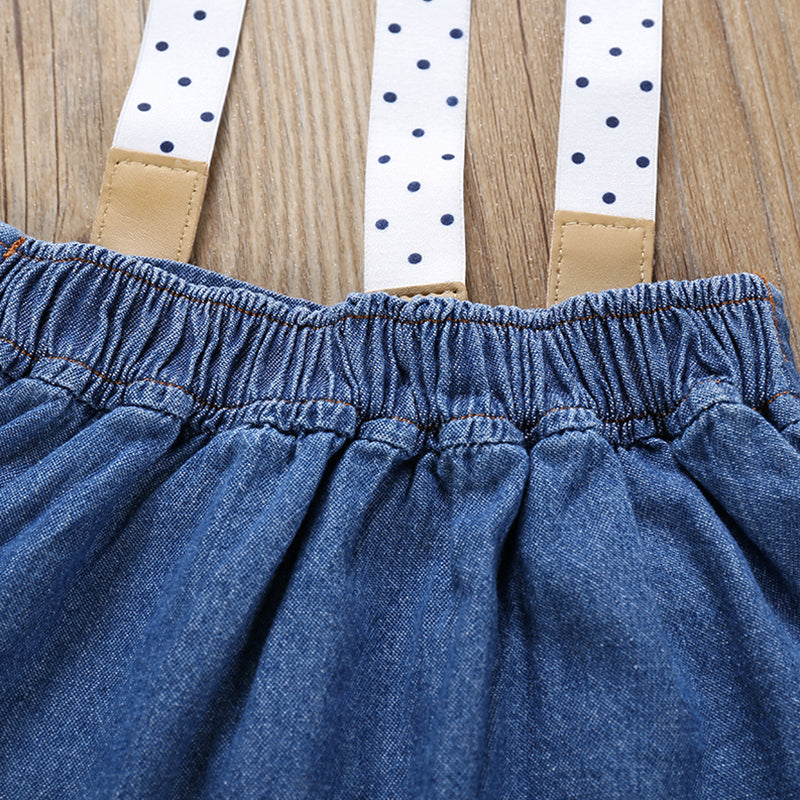 تنورة دنيم للأطفال, تنورة دنيم للأطفال عالية الجودة بحمالة عنق قصيرة باللون الأزرق من 2-8 سنوات