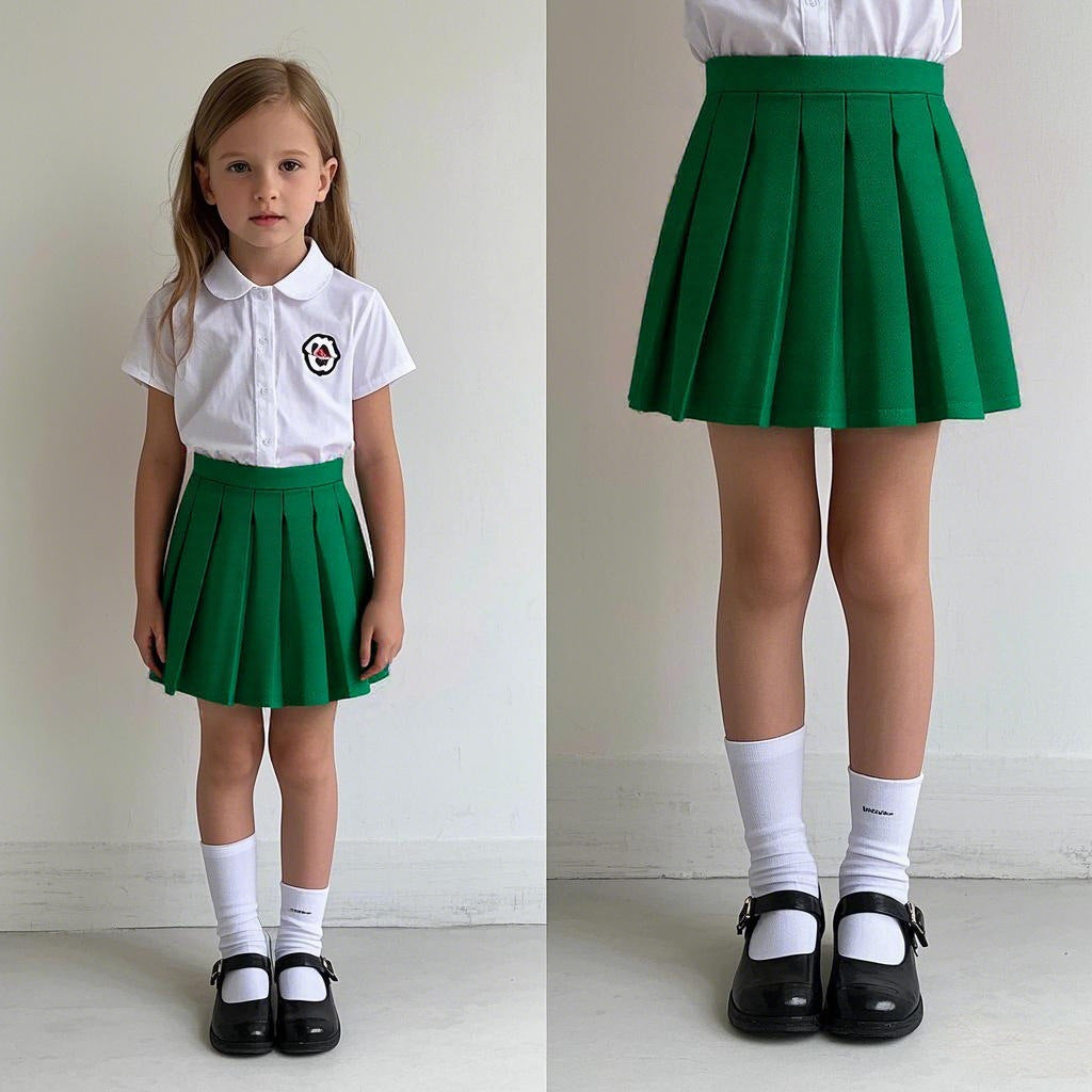 تنورة صغيرة للفتيات الصغيرات باللون الأخضر الداكن مطوي للأطفال ، ديكور قصير طويل للتنفس للربيع والصيف