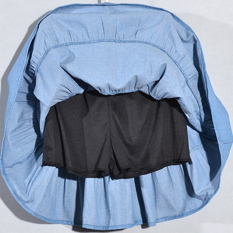 أزياء الصيف الجديدة ، تنورة قصيرة مطوي للنساء مع بطانة غير رسمية كلاسيكية تناسب جميع أنواع الملابس الزرقاء تنورة الدنيم الفتيات الكورية Faldas