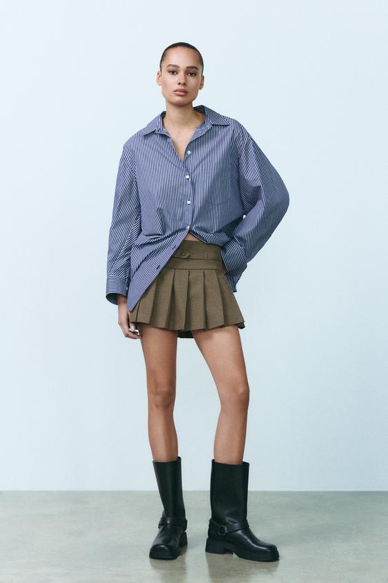 تنورة نسائية صيفية من KP&ZA بتصميم A-Line، خصر عالي، بنطلون ضيق مطوي، زينة بأزرار، خصر طبيعي، صبغة عادية للفتيات لفصل الخريف.