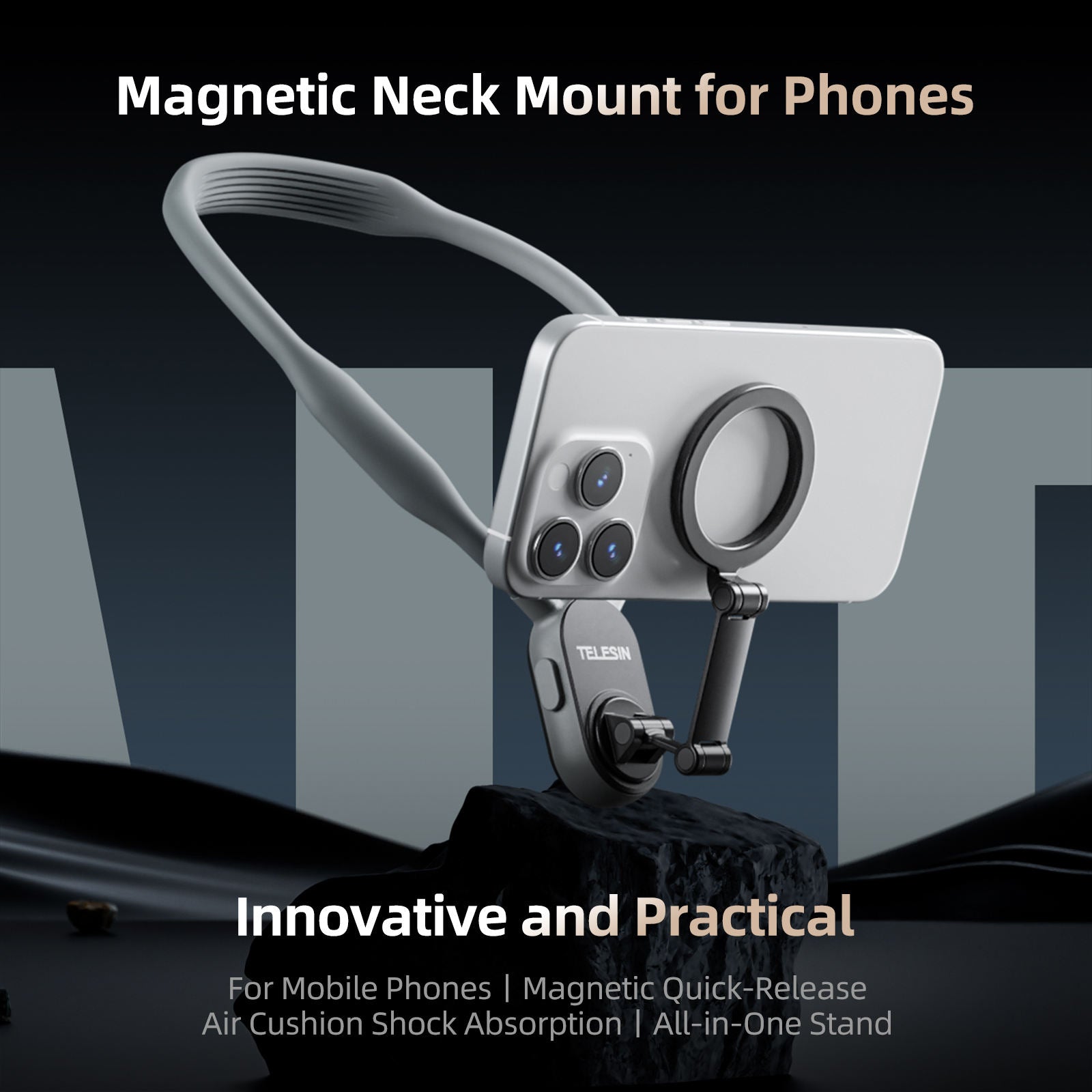 حامل رقبة مغناطيسي من السيليكون من TELESIN مع خاصية فك سريع لهاتف