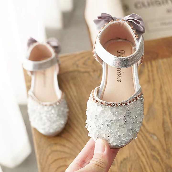 2024 New Summer Girls Sandals Soft Sole Rhinestones Cute Princess Shoes Children's Shoes Girls Leather Shoes in Spring