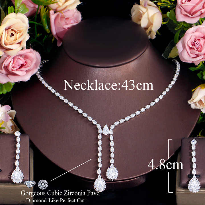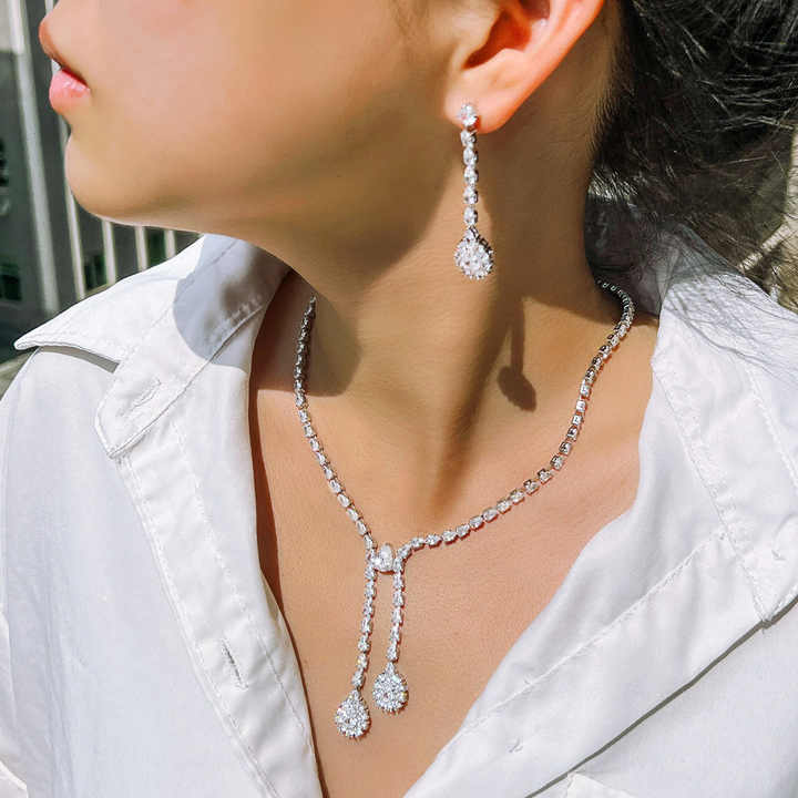 Luxury Bling Cubic Zirconia Crystal Bridal Bridesmaid Jewelry Set for Wedding Drop Earrings and Necklace Jewelry Accessories