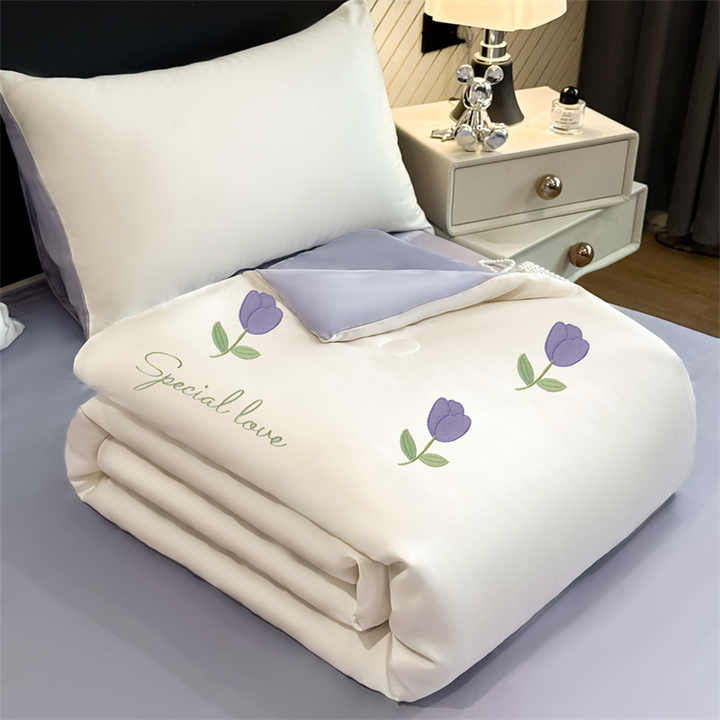 Luxury Bedding Set Full Embroidery Series Exquisite Sense Single & Double Washed Ice Silk Summer Quilt 4 Pieces